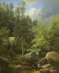 Aufziehendes Gewitter im Thal. 1889. Öl auf Holz. 58 x 47 cm, mi...1001-2