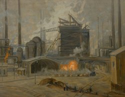 Industrielandschaft mit Hochofen. Öl auf Leinwand. 78 x 100...1003-1