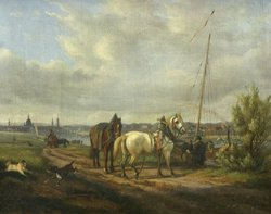 Belebtes Elbufer mit Booten, Personen, Pfer...1004-2