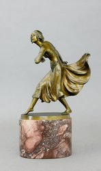Tänzerin mit wehendem Rock. Bronzefigur, braun patiniert, mit Farbstein...1007-22