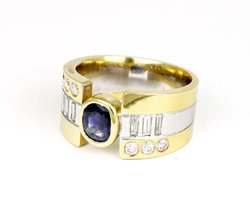 Ring, 750er WG./GG. mit Saphir im Ovalschliff