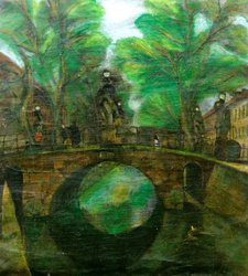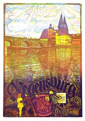 Regensburg. 1971. Farbholzschnitt in drei Farben (gelb, rot, blau)...1012-2
