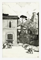 Rom, Blick auf Pincio und Villa Medici. 1971. Radierung (Strichät...1012-3