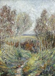 Herbstbirken. Weimar 1921. Öl auf Malkarton. 69 x 51 cm. Links un...1018-3