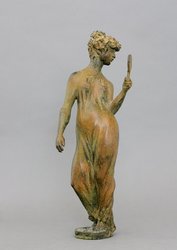 Stehende Frau mit Spiegel. Bronzefigur mit Plinthe, dort am Rand ...1023-5