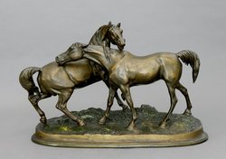 Zwei Pferde. Figurengruppe mit Plinthe, patinierter Metallguss. H ...1024-1