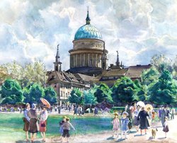 Potsdam, Stadtschloss und Karpfenteich, am rechten Rand der Neptunbrunne...1050-1