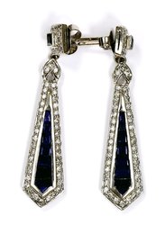 Ohrhänger, 750er WG. mit Saphiren und Brillanten, ein Paar