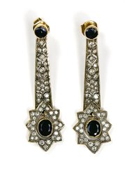 mit drei Diamanten im Tropfenschliff von 1,ct -1,25 ct. leicht getönt. L.: ca. 40...1057-4