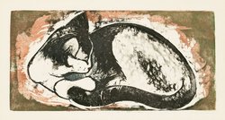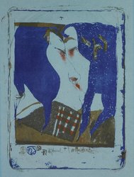 Nao-phrasiert (Der Kuss). 1985. Farblithographie auf blauem Japanbütten. ...1056-1