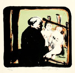 Der Maler. 1970. Farblithographie von drei Steinen. 13,7 x 15,1 cm, Bg. 25 x ...1052-1
