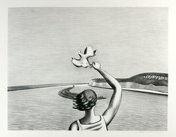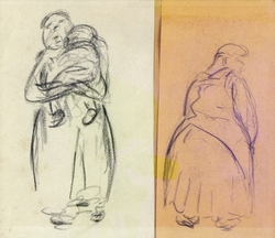 Frau mit Kind auf dem Arm; Rückenansicht einer Frau. Zwei Bleistiftz...1060-21