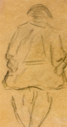 Figurenstudie von hinten. Kohlezeichnung auf braunem Velin. 12,5 x 6,...1060-23