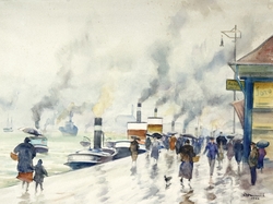 Fußgänger am Hafenquai. 1942. Aquarell auf Ingres-Hahnemühle, hinter...1060-3