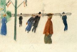 Cafébesucher. Kohlezeichnung auf Velin. 14,6 x 11,3 cm. Rückseitig ...1060-20