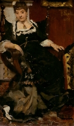 Dame im Sessel sitzend. 1879. Das Kleid, der Schmuck und das Ambiente deu...1066-7