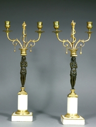 Kerzenleuchter, Alabaster und Bronze, Frankreich, Napoleon III, ein Paar