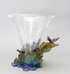 Trichterförmiger Klarglaskörper, eingehüllt von Blumen, Frösch...1096-5