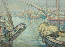 Segelboote im Hafen. Öl auf Leinwand. 58,5 x 80,5 cm. Links unten signie...1098-2