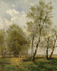 Landschaft mit Birken. Öl auf Leinwand. 51 x 41 cm. Links unten sig...1098-24