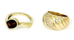 1 x mit Granat?, 1 x mit zahlreichen Diamanten im Brillantschliff. RW 55/46. Brutt...1106-14
