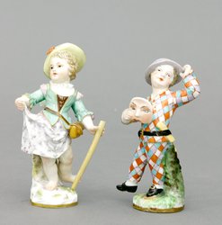 Miniaturputto, mit kurzem Röckchen und Wanderstab. Auf Landschaftsinsel. Bunt gemal...906-27