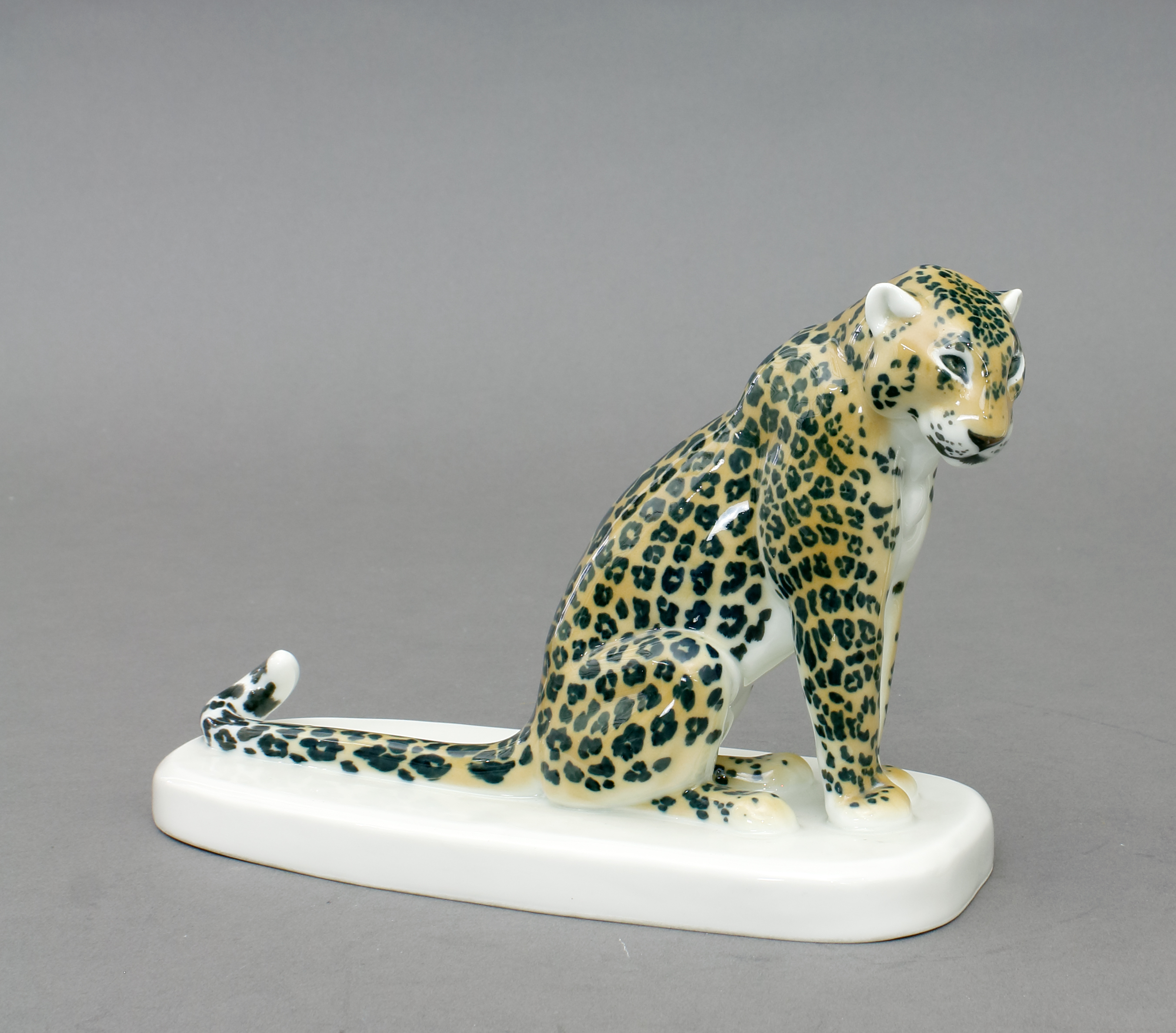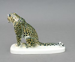 Leopard. Entwurf Rudolf Löhner (1890 -1971) 1911. Naturalistisch staffiert. H 14,5 x B 22 x T 9 cm. Blaue Knaufschwerter, 1. Wahl., Modelln° B 247. (1007-15)
