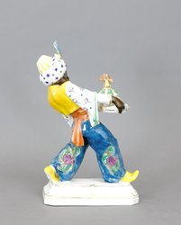 Mohr mit Kuchen. Entwurf Hugo Meisel (1887 Lichte -1966 Rudolstadt). Porzellan, bunte Aufglasurbemalung und Golddekor. Auf Sockel signiert. Preßmarke Schwarzburger Werkstätten für Porzellankunst mit laufendem Fuchs sowie Modelln° U182. (1007-23)