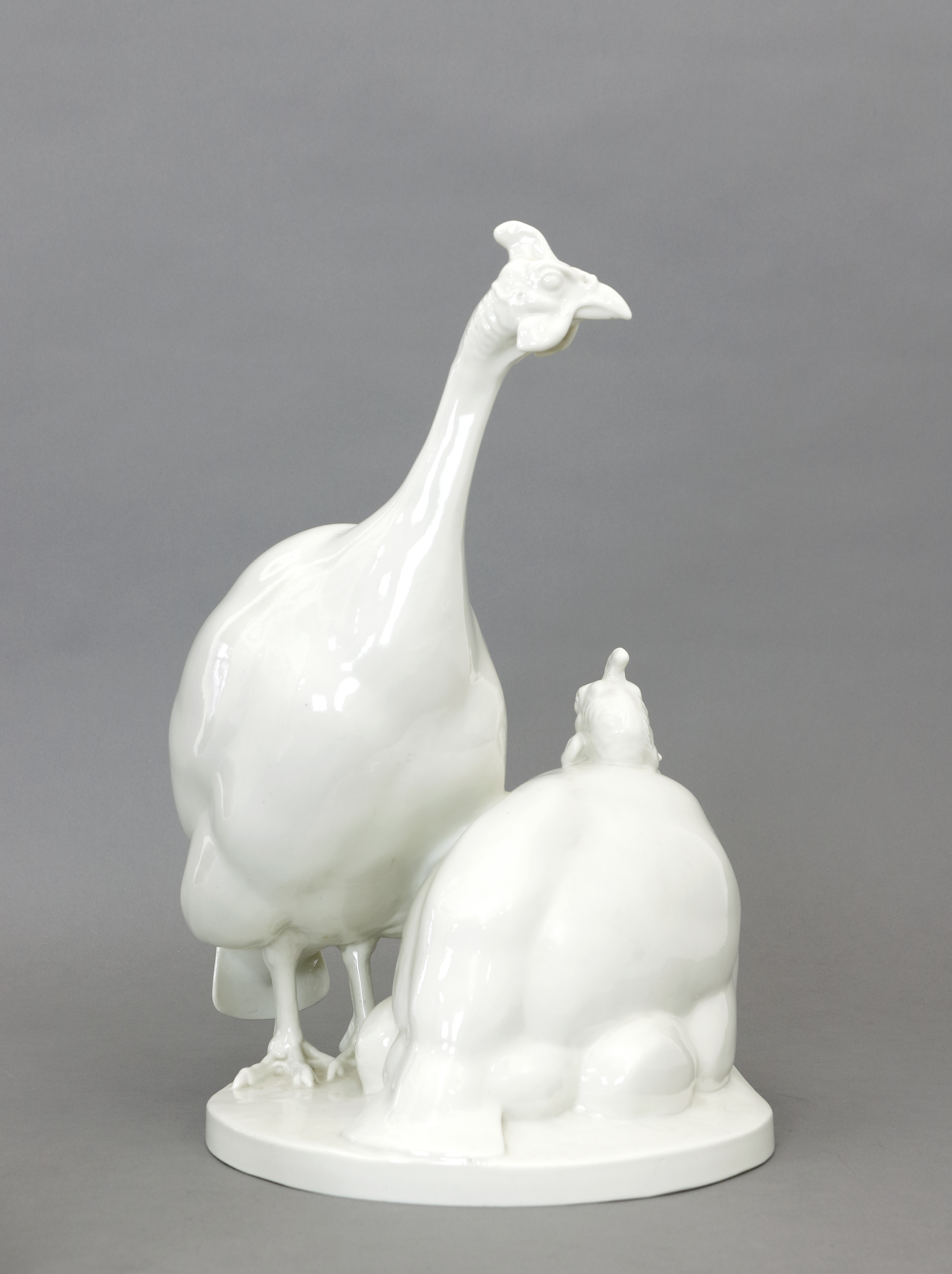 Perlhühner. Entwurf Max Esser (1885 -1945). ca. 1910/11. Porzellan, weiß. H 37 cm. Blindstempel Fuchsmarke mit Schwarzburger Werkstätten für Porzellankunst. Modell U 1030. -Lit.: S. Wallner u.a., Schwarzburger Werkstätten für Porzellankunst, Hohenberg/Eger, 1993. (1014-1)