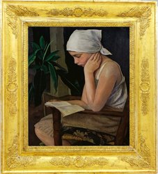 Bildnis eines lesenden Mädchens. Um 1930. Öl auf Leinwand. 60 x 51 cm. Rechts oben signiert. Gerahmt. Drei hinterlegte Stellen. (1015-2)