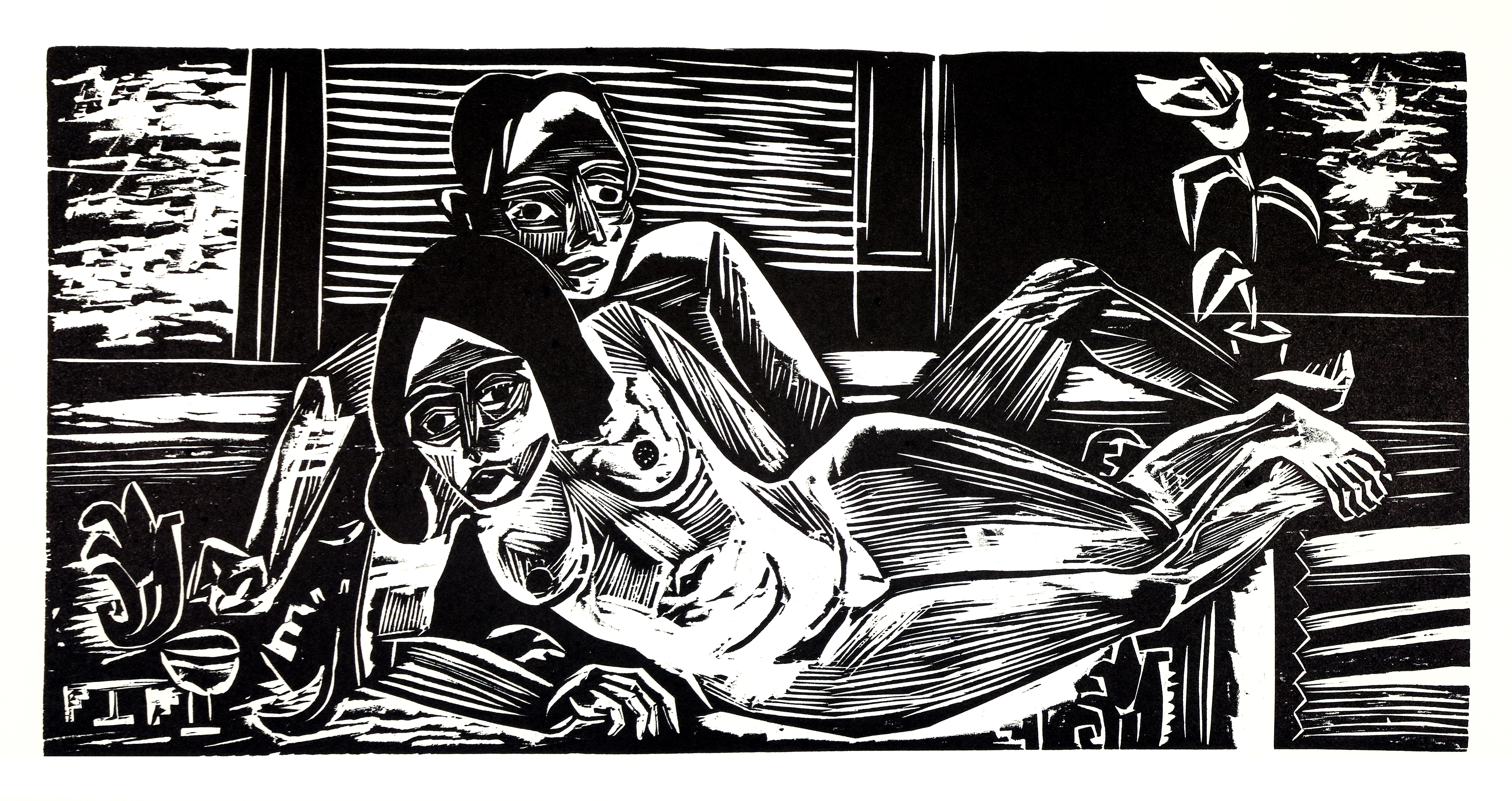 Liebespaar. Holzschnitt auf Japanpapier. 29,5 x 60 cm, Bg. 55 x 75,5 cm. Nummeriert, mit Nachlassstempel und Nachlasssignatur. Exemplar VI/XV. (1016-3)