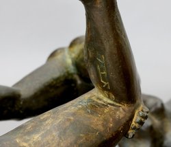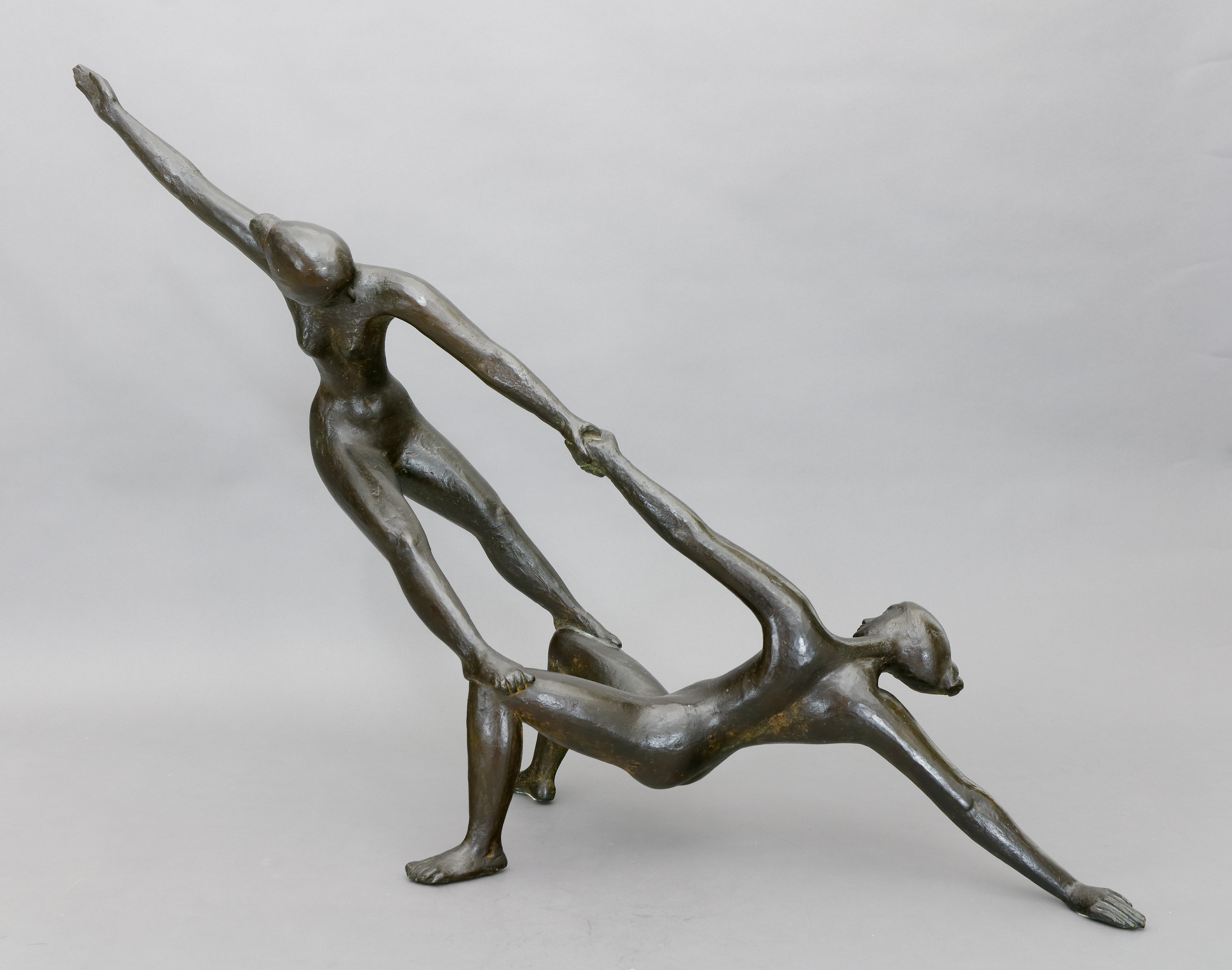Artistinnen III. 1973. Bronzefigurengruppe mit dunkelbrauner Patina. 58 x 100 x 25 cm. Monogrammiert KHK und nummeriert 1/6. -Großfassung dieser Figur im August-Behring-Krankenhaus, Berlin, ganzseitig abgebildet in: Karl-Heinz Krause. Baukunst. Köln, Ausstellung 1974, N° 87. Kat. beigegeben. (1023-7)
