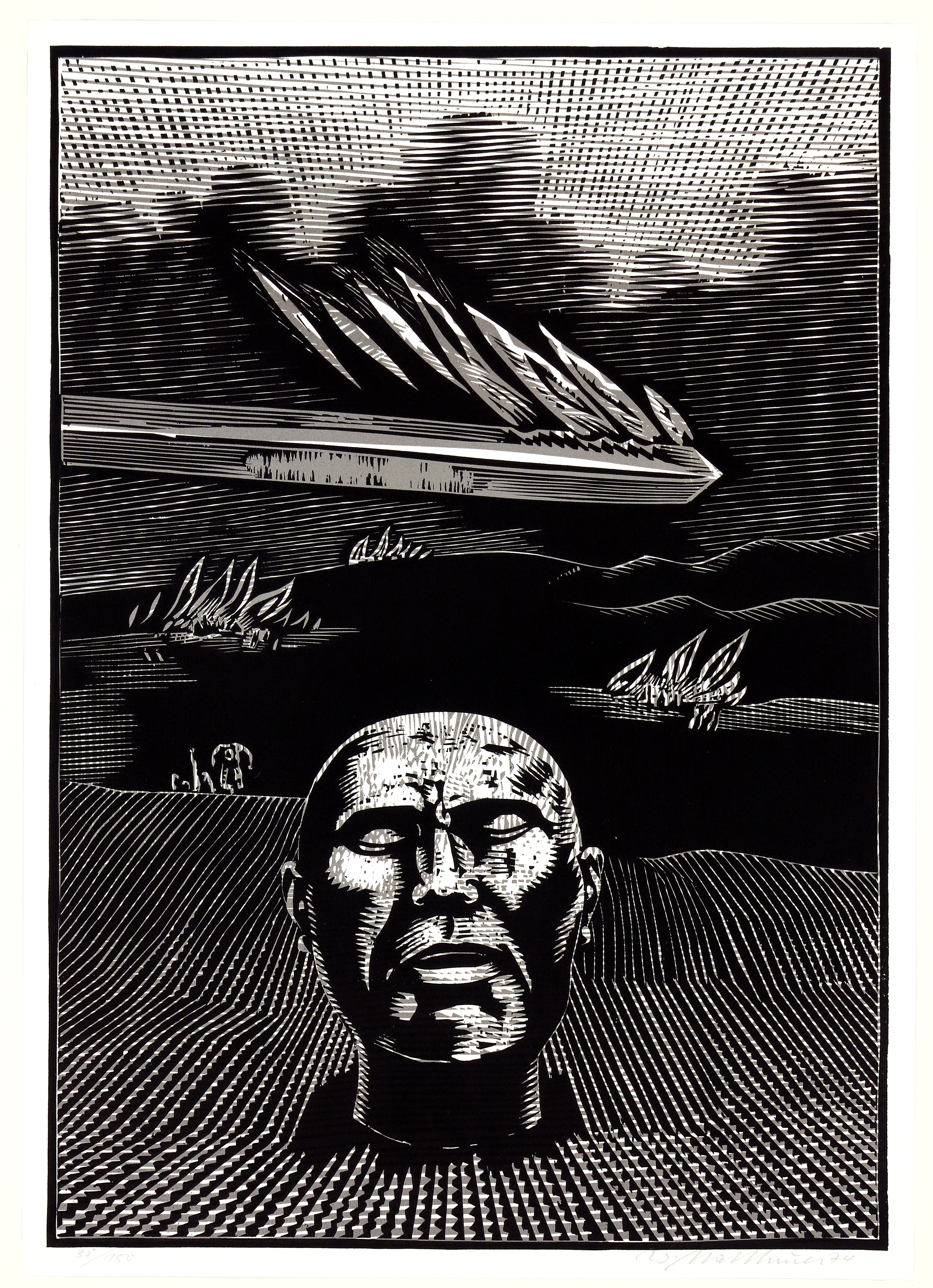 Lwd.-Kassette mit 35 Graphiken von Fritz Cremer (Gredig II 307), Helmut Diehl, Lea Grundig, Gerhard Gossmann, Bernhard Heisig (2 x), Karl-Georg Hirsch, Werner Hennig, Rainer Herold, Rolf Lindemann, Klaus Magnus, Ursula Mattheuer-Neustädt, Wolfgang Mattheuer (Koch/Gleisberg/Seyde 206 III), Alexandra Müller-Jontschewa, Armin Münch, Rolf Münzner (Karpinski/Matuszak 45), Ronald Paris, Peter Pfefferkorn, Heinz Plank, Nuria Quevedo, Robert Rehfeldt, Gerenot Richter, Arno Rink, Frank Ruddigkeit, Horst Sakulowski, Eva-Maria Schreiter, Wolfram Schubert, Volker Stelzmann, Peter Sylvester (2 x), Dieter Tucholke, Dieter Weidenbach, Heinz Zander (Hartleb 179), Fotis Zaprasis und Baldwin Zettl (Baumann B 25). Die Radierung von Lea Grundig lag nur den Exemplaren 1-65 bei. Jedes Blatt signiert, überwiegend datiert und nummeriert, teilweise betitelt. Exemplar 38/150. Herausgegeben vom Ministerium für Kultur der DDR, 1975. 150 Ex., wovon 125 Ex. in die Kassetten eingelegt wurden, alle Arbeiten unter Passepartout, überwiegend an den Ecken montiert. In OLwd.-Kassette mit Titeldruck auf Leder, etwas bestossen. Alle Bll. gut erhalten, nur ein Heisig etwas stockfleckig. Die Auflage diente ausschließlich für Geschenkzwecke und war nicht für den Kunsthandel bestimmt. In dieser Vollständigkeit selten. (1032-1)