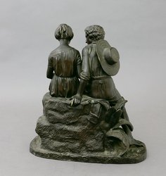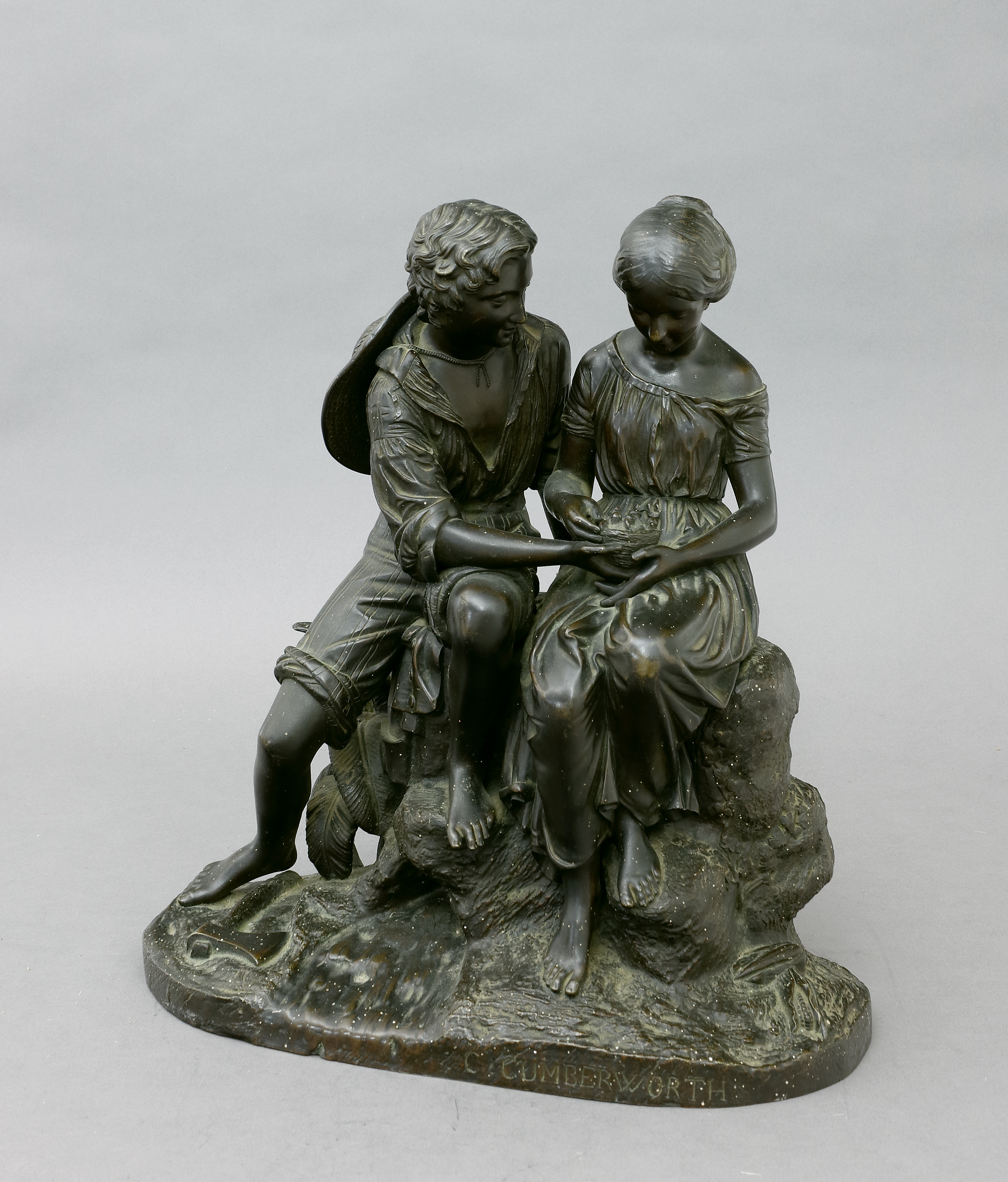 Paul und Virginie. Bronze-Figurengruppe auf Plinthe, dort bezeichnet. H 34 x B 31,5 x T 16,2 cm. -Cumberworth war Schüler der Ecole-des-Beaux-Arts de Paris und stellte von 1833-1848 im Pariser Salon aus.  (1036-2)