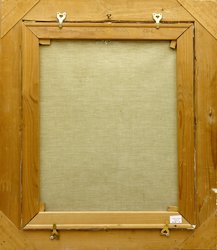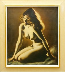 Kniender weiblicher Akt. Öl auf Leinwand. 60,5 x 50,2 cm. Rechts unten signiert. Kleines Loch durch Nagelaufhängung im oberen Haaransatz. Gerahmt. (1048-1)