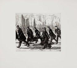 De profundis clamavi ad te, Domine. Zyklus von 16 Radierungen 1947 -1952. 16. Rad. mit Aquatinta auf Kupferdruckkarton. Berlin, Edition Schwarz auf Weiss, 1982. Groß-Folio. OLwd.-Kassette. Im Impressum signiert und nummeriert 55 (GA 75 Ex.). -vgl. Saure/Weström 85. -Komplette Folge der Graphik-Edition in tadelloser Erhaltung. -Rotermund, Meisterschülerin von Emil Orlik, widmet sich mit diesem Mappenwerk dem Berlin der Nachkriegszeit und dem Elend der Flüchtlinge. 1952 erhielt sie dafür den Kunstpreis der Stadt Berlin. (1052-3)