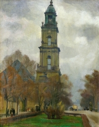 Ansicht der Potsdamer Garnisonkirche im Herbst. 1925. Öl auf Leinwand. 63,5 x 47,5 cm. Links unten signiert und datiert. Gerahmt. - Provenienz: Bassenge 25. 11. 2011, Lot 6187; Westdeutscher Privatbesitz. (1060-12)