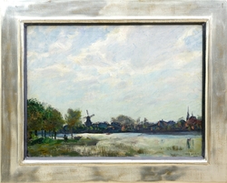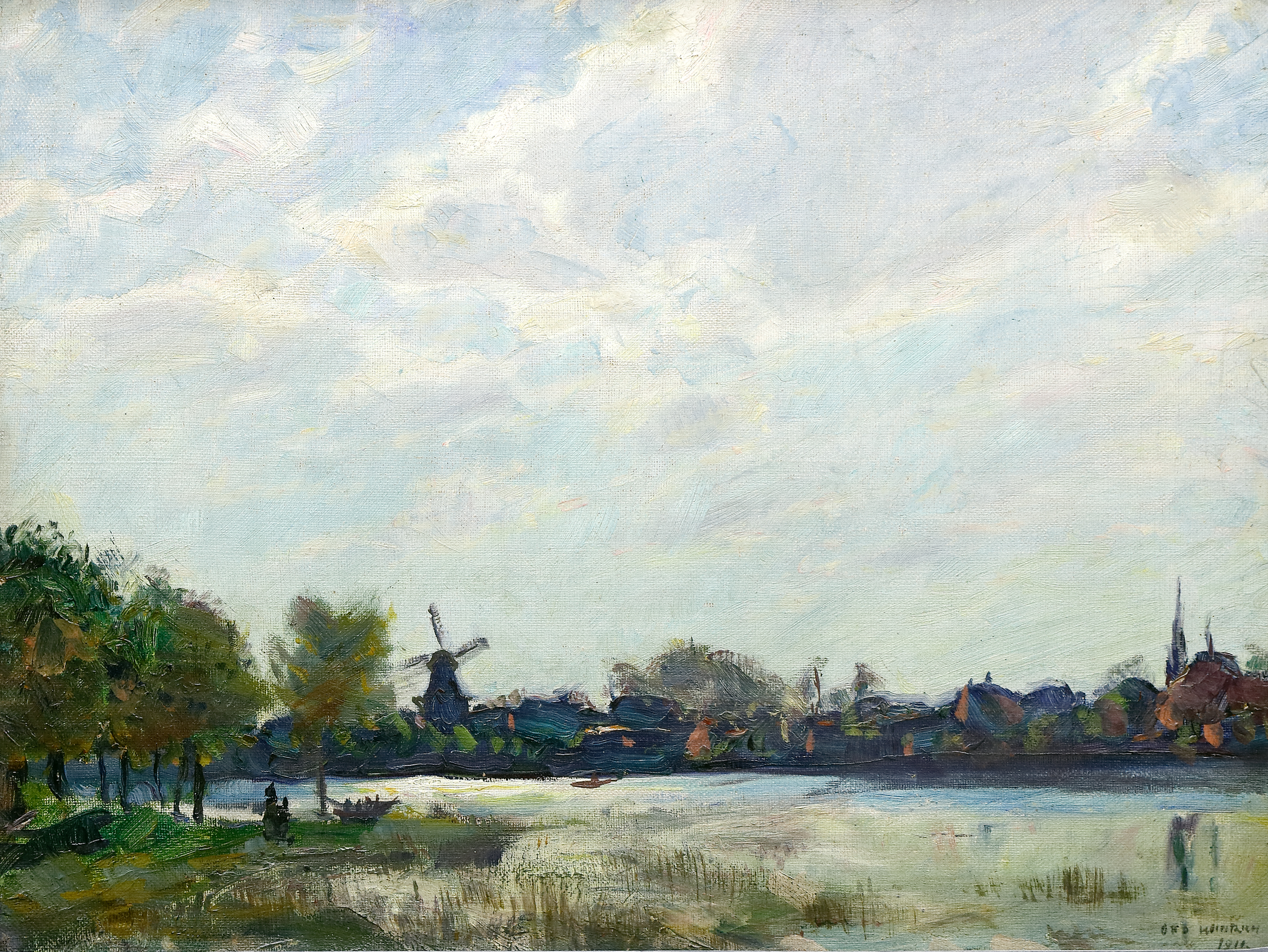 Blick auf Werder/Havel bei Potsdam. 1911. Öl auf Leinwand. 31 x 40 cm. Rechts unten signiert und datiert. Neu gerahmt in über Eck gearbeiteter Silberleiste. (1060-16)