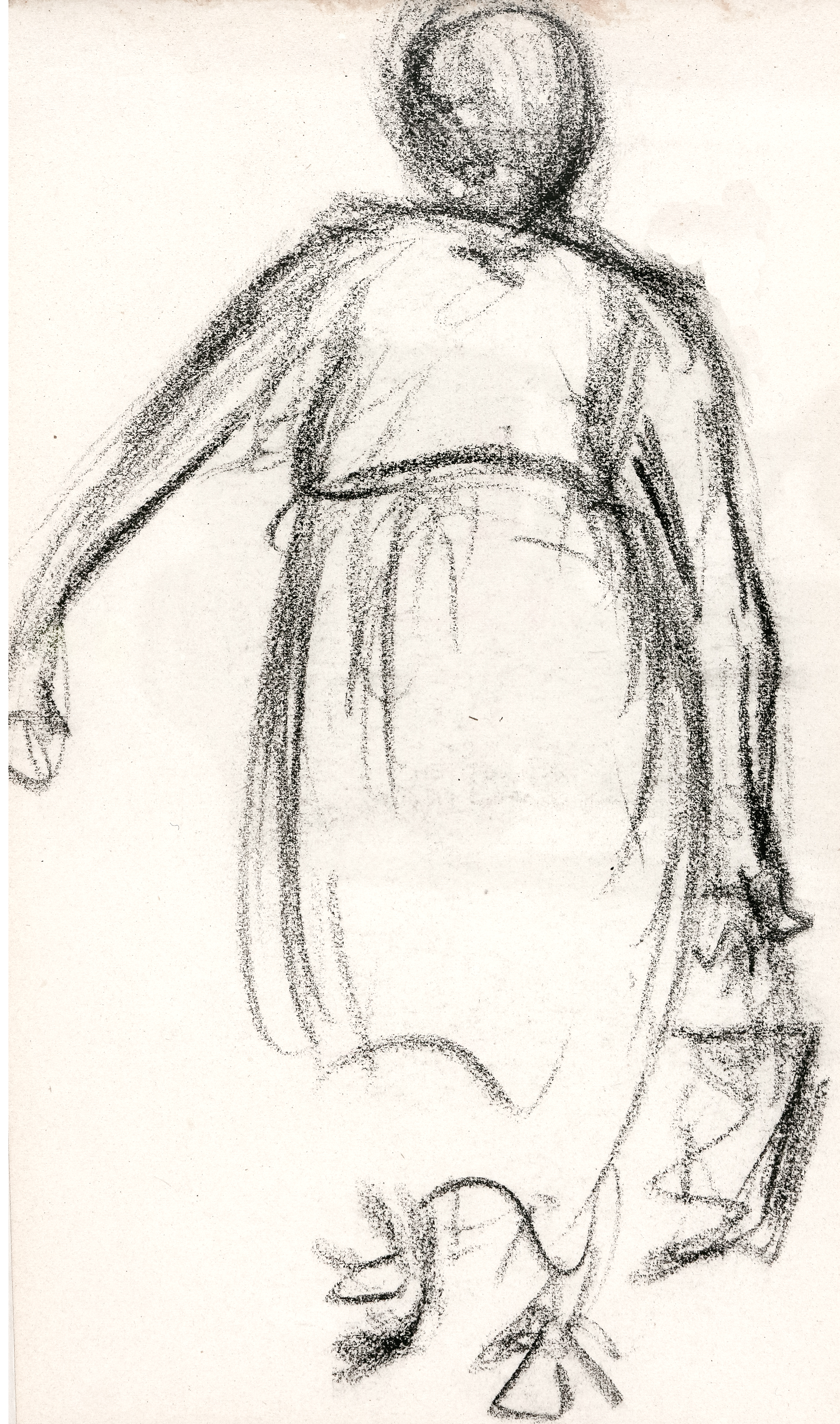 "Unser eener muß sich puckeln". Kohlezeichnung auf Velin. 18,7 x 11,2 cm. Rückseitig mit dem roten Nachlassstempel des Künstlers. Im Passepartout, unter Glas gerahmt. (1060-18)