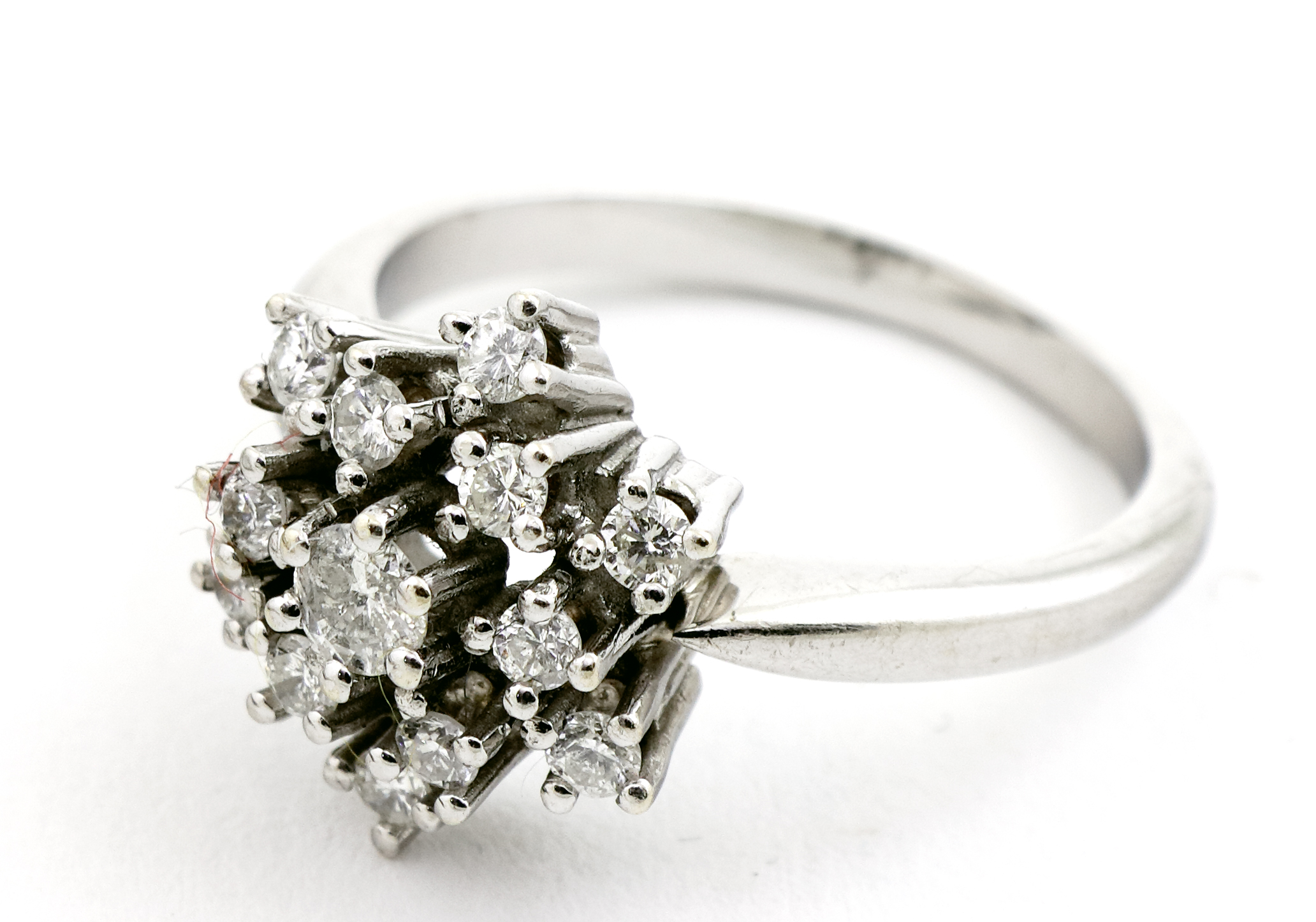von je ca. 0,04 - 0,15 ct., angeordnet wie eine Blüte. RW 53. Bruttogewicht ca. 4,75 g. (1065-23)
