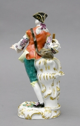 Schäferin mit Schäferstab. Entwurf Friedrich Elias Meyer (1724 - 1784) etwa 1760. Farbig gemalt und gold staffiert. H 17,5 cm. Blaue Schwertermarke, 1. Wahl, Modelln° 61117 (alt 1774) und gepreßt 91C. (1065-5)