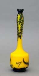 Richard Cameo. Art Deco Vase. Sonnengelbes Überfang-Glas mit geschnittenem dunkelblauem Blumendekor. Signiert "Richard". H 21,5 cm. (1066-38)