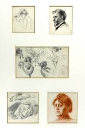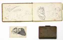 Zwei Skizzenbücher. Bleistiftzeichnungen, überwiegend mit diversen Zoo-Tieren (Löwen, Raubvögel, Giraffen etc.), diversen Porträtzeichnungen, eine Landschaft. Leinen (11,5 x 19 cm) und Halbleinen (11 x 7,5 cm, signiert und datiert 1873). Gebrauchsspuren. Beigaben. (1066-51)