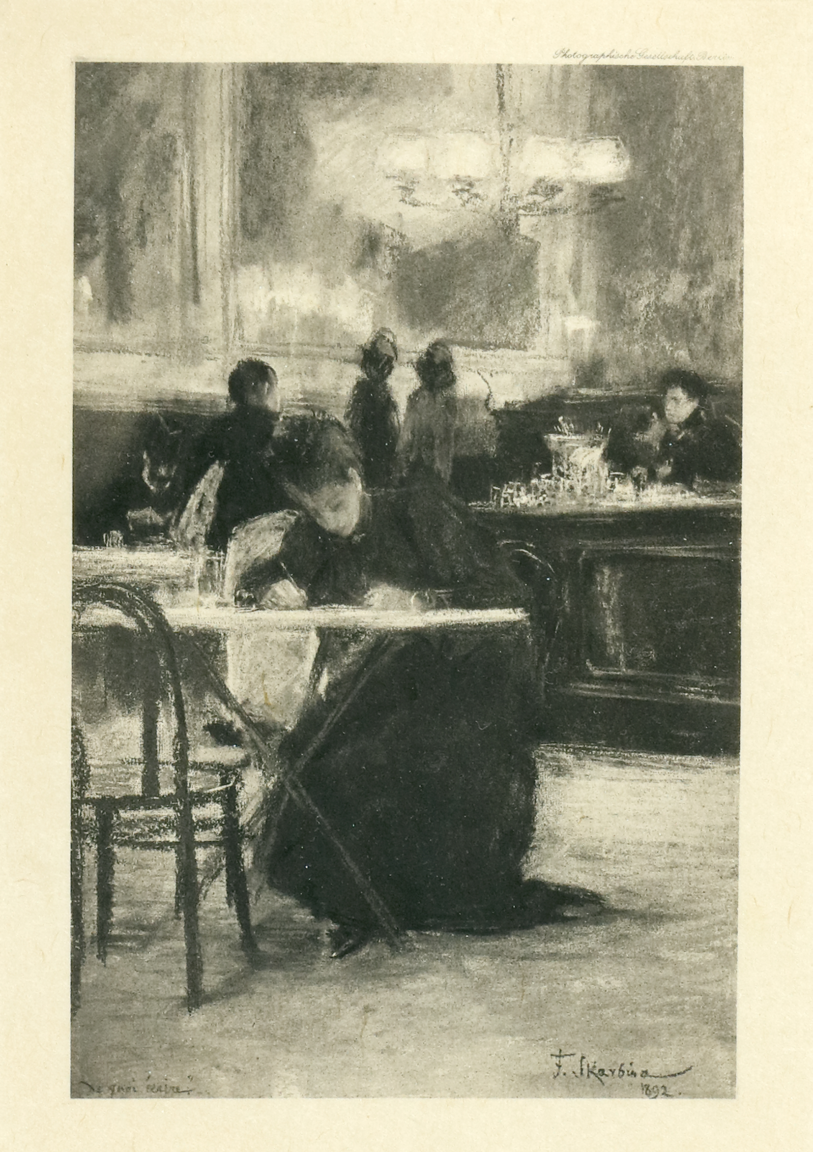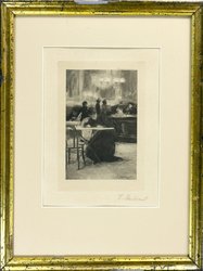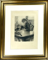 De quoi écrire (1892). Heliogravur. 18 x 12,8 cm. Mit Bleistift signiert sowie in der Platte datiert und bezeichnet. - Beigegeben: Ders. Geschwisterpaar am Tisch. Rad. von 1889. (1066-56)