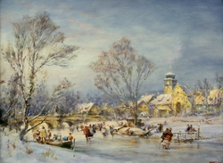 Eisvergnügen. Öl auf Holz. 30 x 40 cm. Rechts unten signiert. Gerahmt. (1081-10)