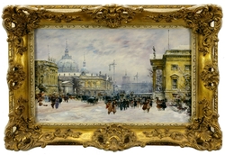 Berlin, Unter den Linden, im Winter. Öl auf Holz. 34 x 50 cm. Links unten signiert. Gerahmt. (1081-3)