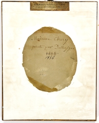 "Madame Chazy", mit schwarzem Hut. 1838. Gouache auf Karton, im Oval. 11,2 x 9,6 cm. Am linken Rand signiert und datiert. Unter Glas gerahmt. (1082-4)