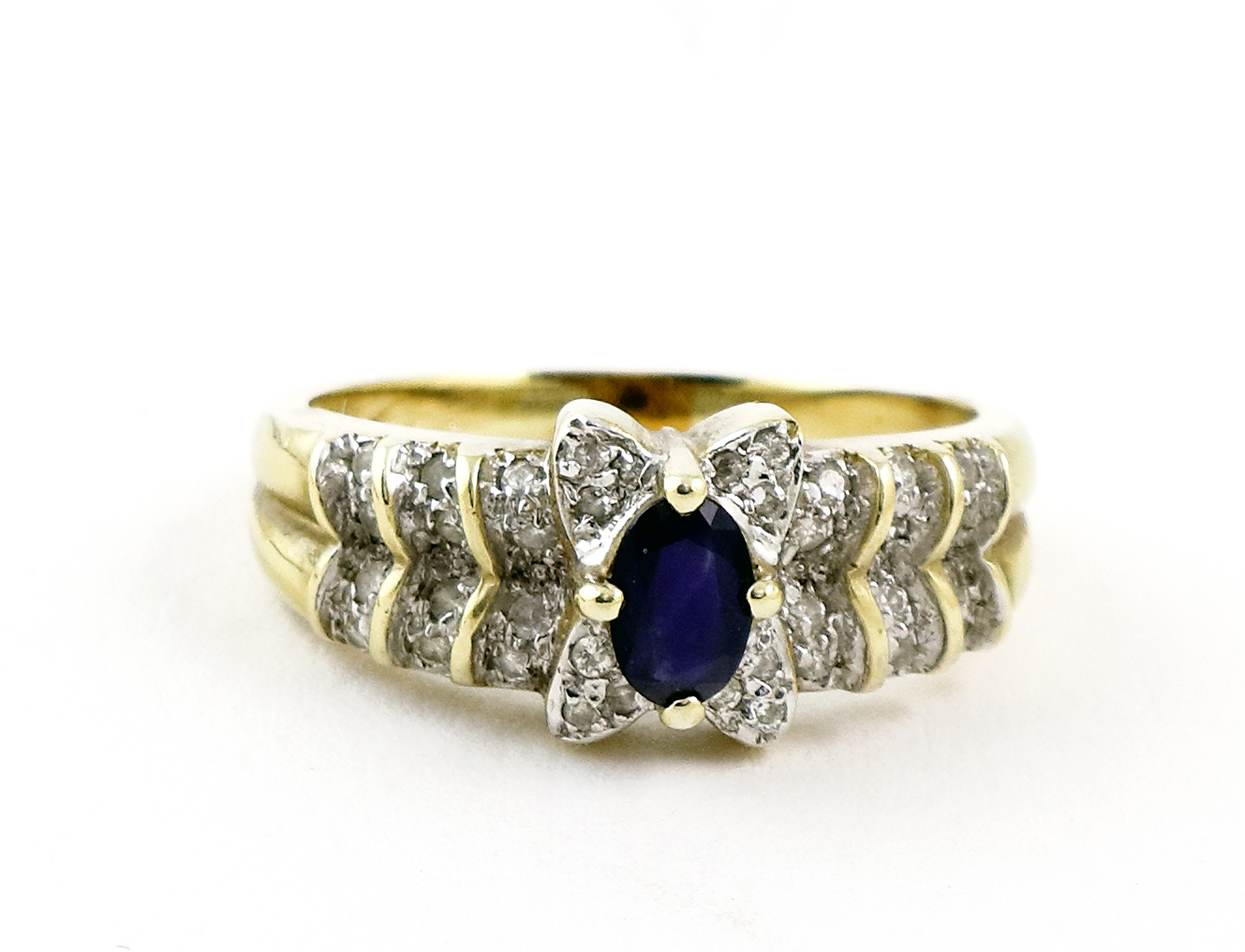 Ring, 585er GG., mit Saphir im Ovalschliff,