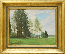 Ein Maientag. Öl auf Platte. 40 x 50 cm. Links unten signiert und bezeichnet "M(ün)ch(e)n" sowie rückseitig betitelt. Gerahmt. (1098-19)