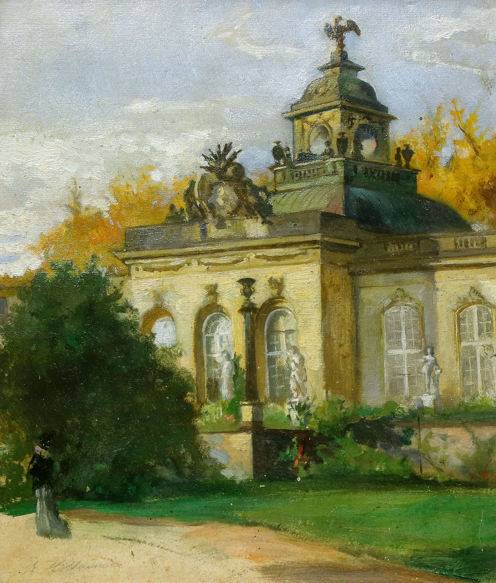 Sanssouci. Öl auf Karton auf Karton. 27 x 23,3 cm. Links unten signiert. Gerahmt. (1098-27)